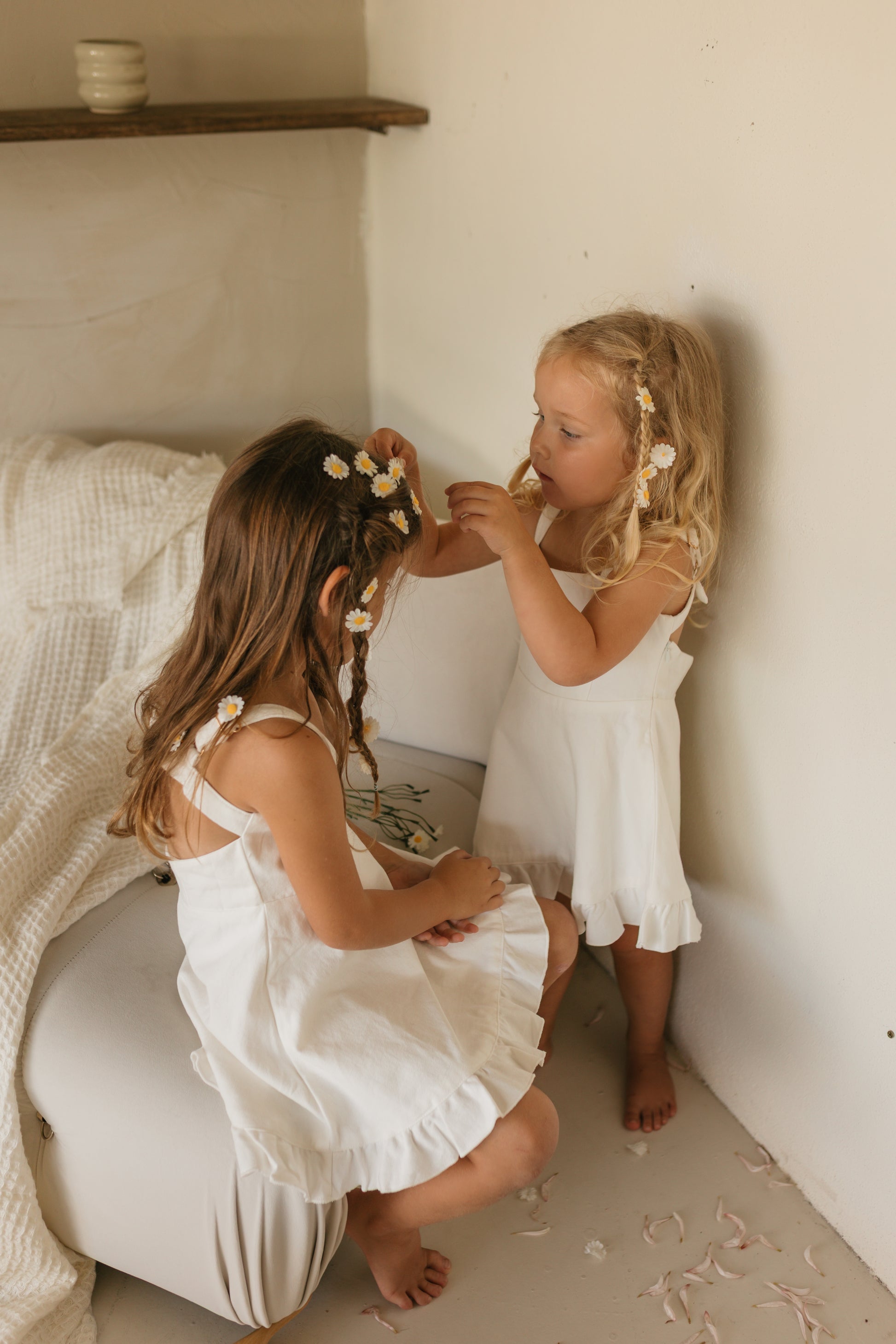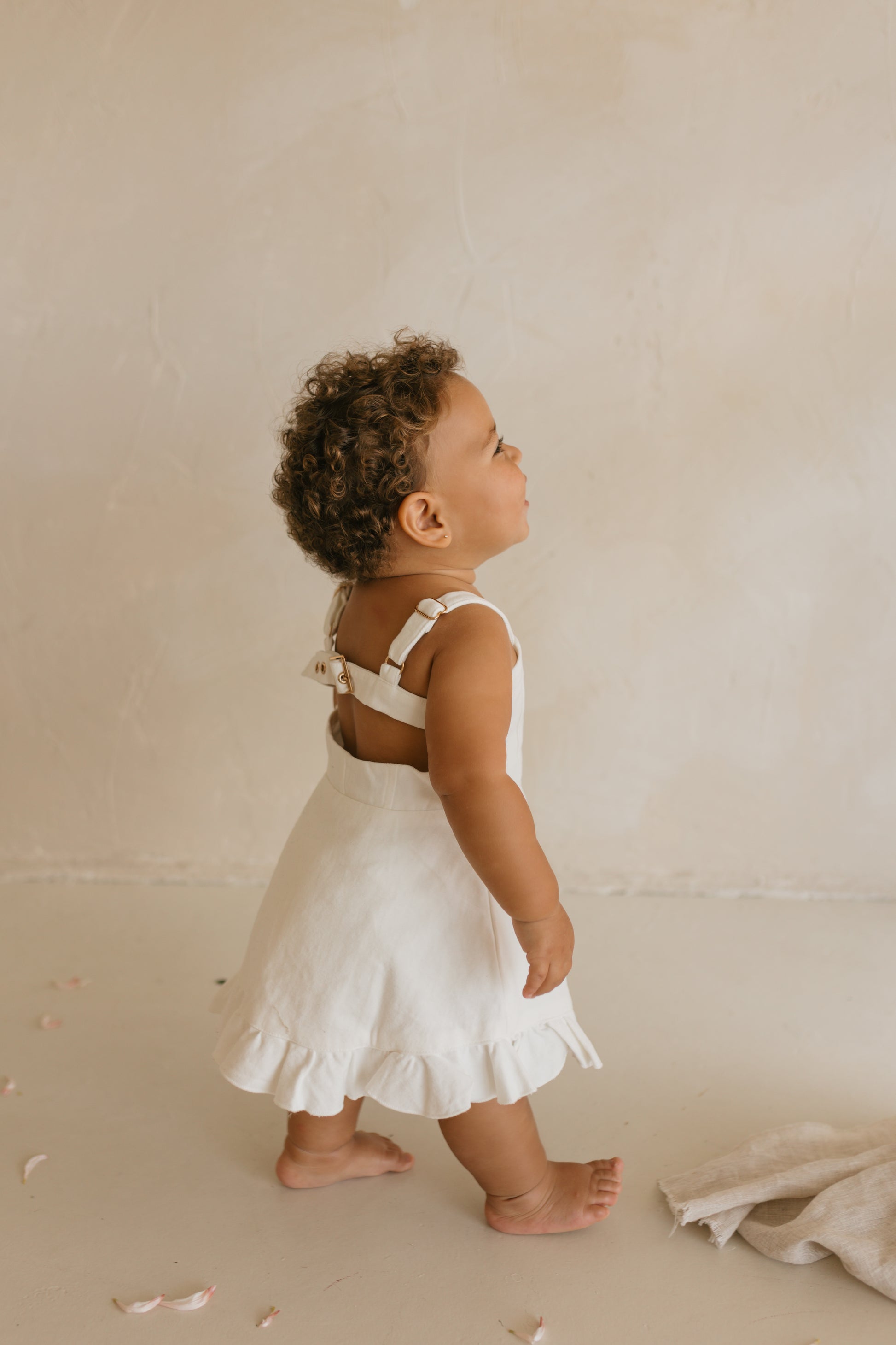 This gorgeous off white dress is designed for twirling, exploring and making the sweetest memories in.